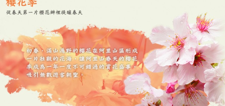 每逢初春,滿山遍野的櫻花在阿里山區形成一片壯觀的花海,讓阿里山春天的櫻花季成為一年一度不可錯過的賞花盛事,吸引無數遊客朝聖。主要的花種包括山櫻花、吉野櫻與八重櫻等花種。在櫻花樹下漫步留影,真是無比浪漫...